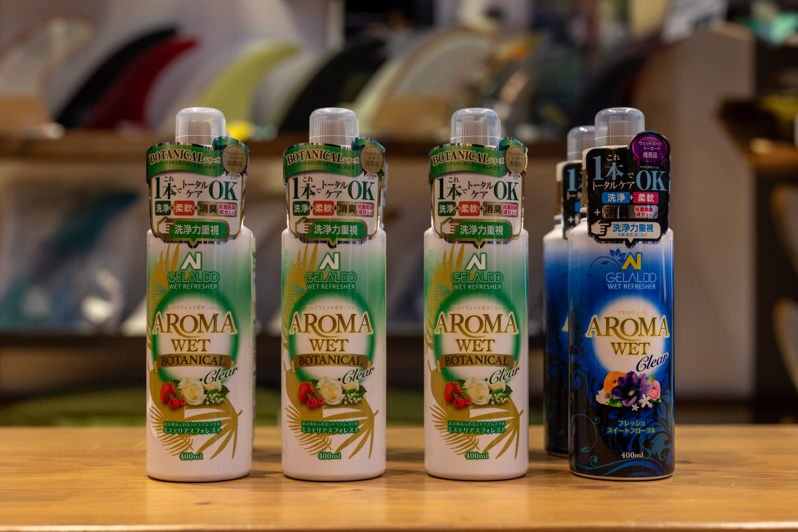 ウェットスーツシャンプー「Aloma wet(アロマウェット)」が入荷し、HANNAH FIRMでは4種類すべてをお取り扱いできるようになりました。