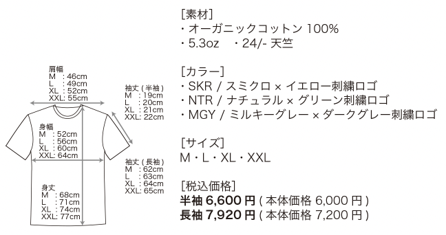 - 半袖 Tシャツ: 6,600円(税込)