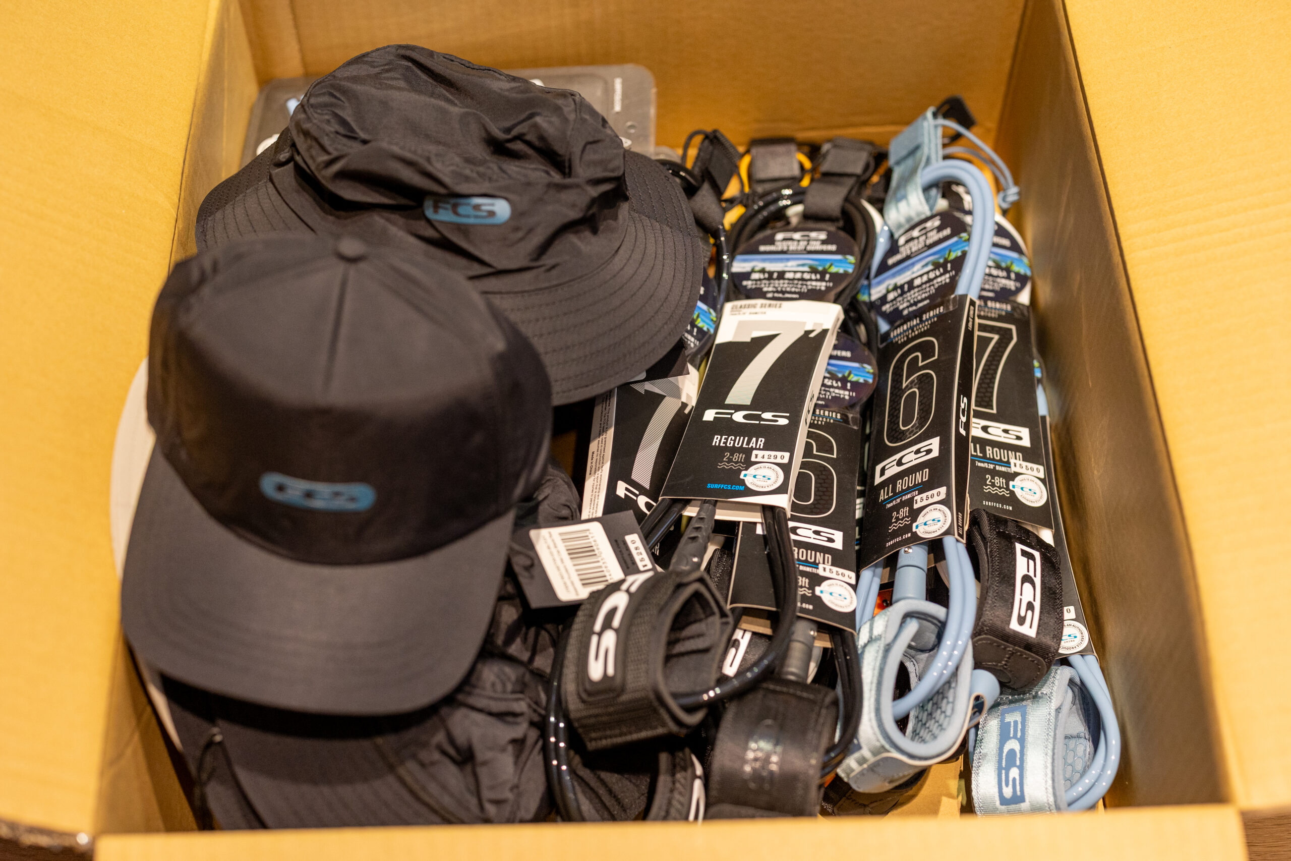 今シーズン、まずは「海での安心感」を支えるリーシュコードや、日差しが強くなるこれからの時期に欠かせないヘッドウェアなどの基本アイテムがラインナップしています。