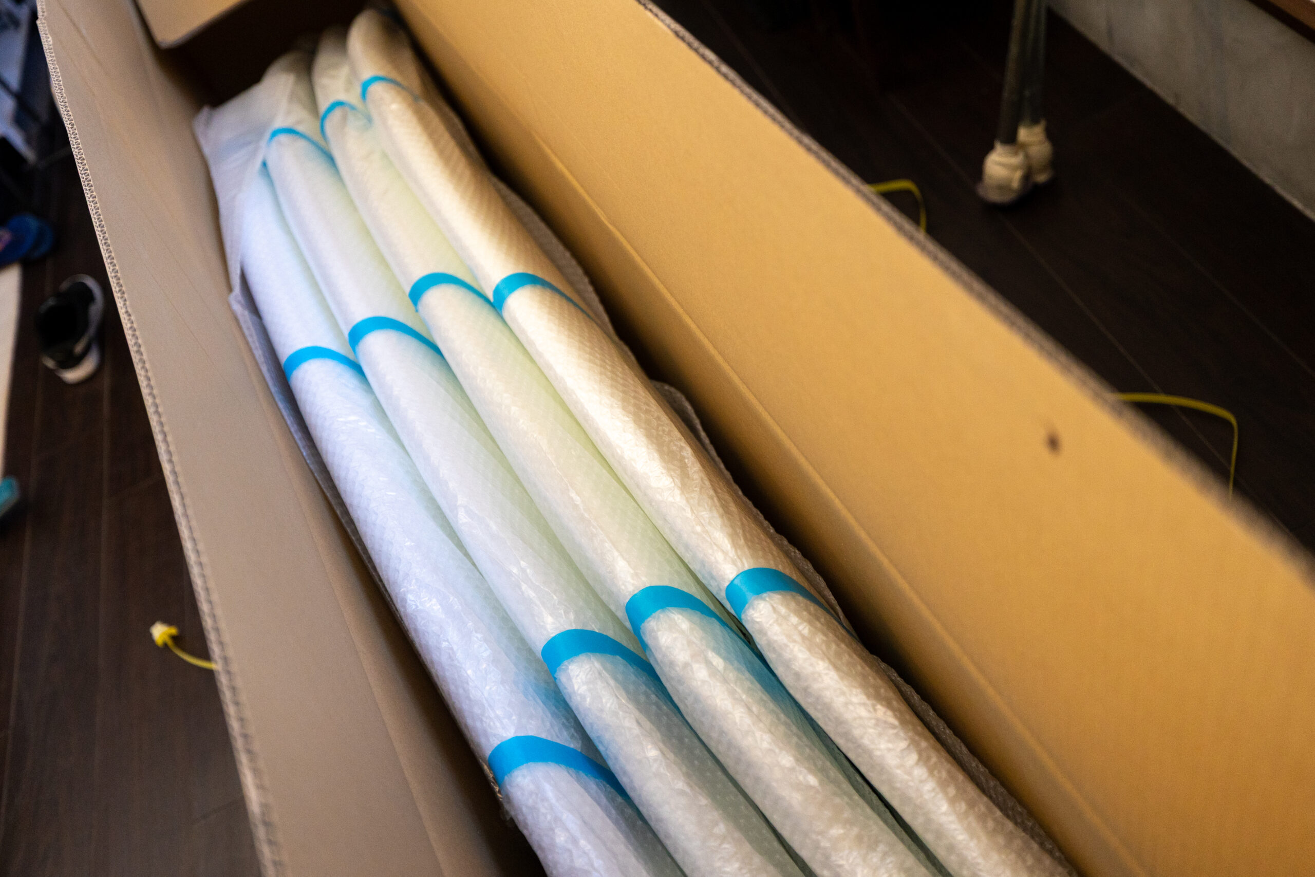徳島のファクトリーから、ここ七ヶ浜へ。 春のシーズンインに向けた、サーフボードが入荷しました。