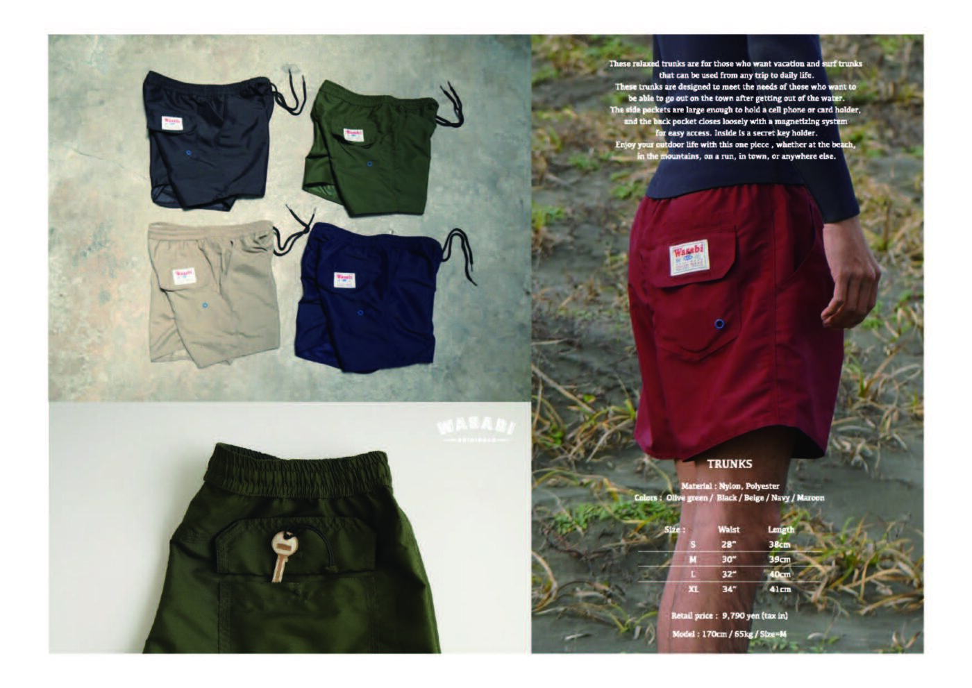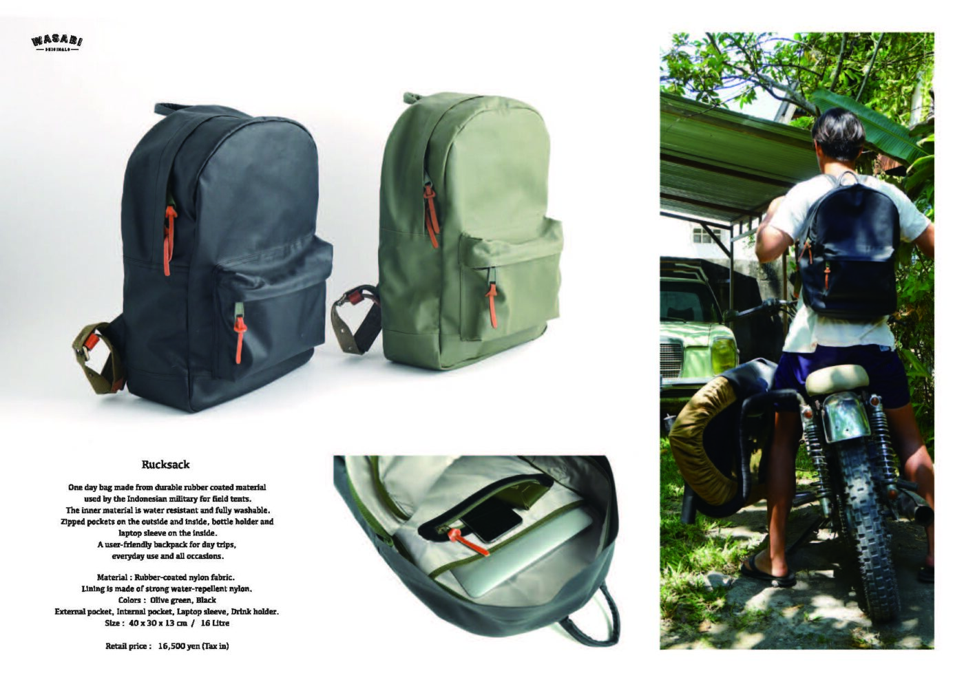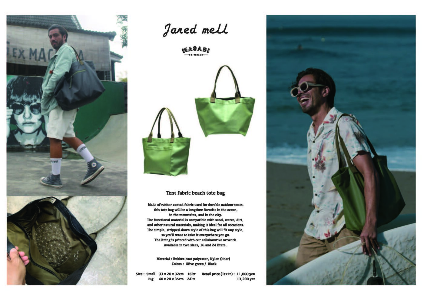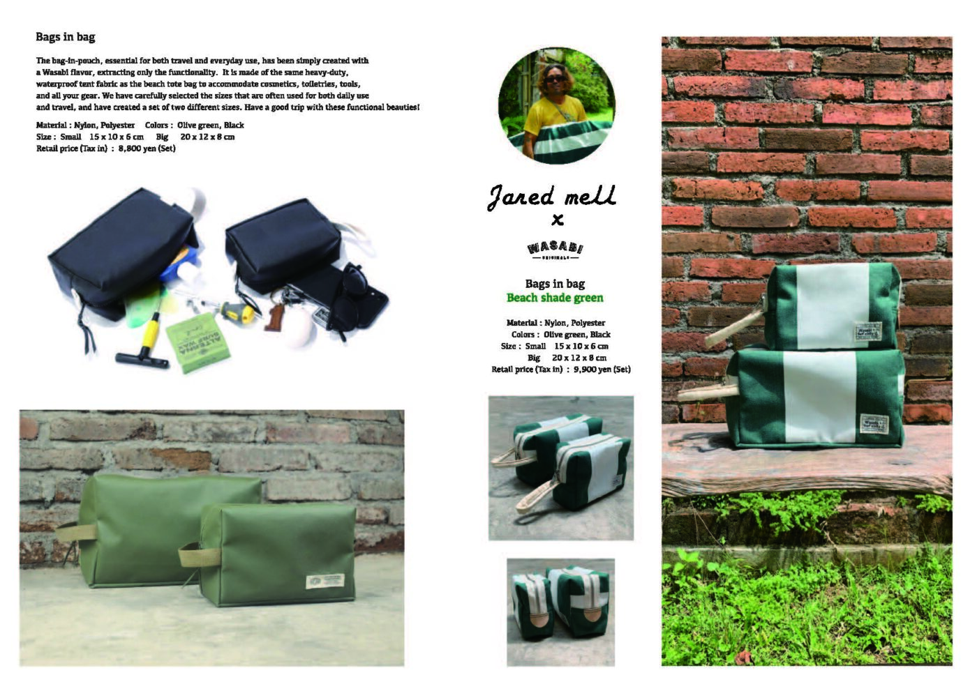 今季も、定番モデルを継続しつつ、新シリーズのトートバッグ、小物ケース、多目的ドライバッグなど、WASABIらしいアイテムが揃っています。
